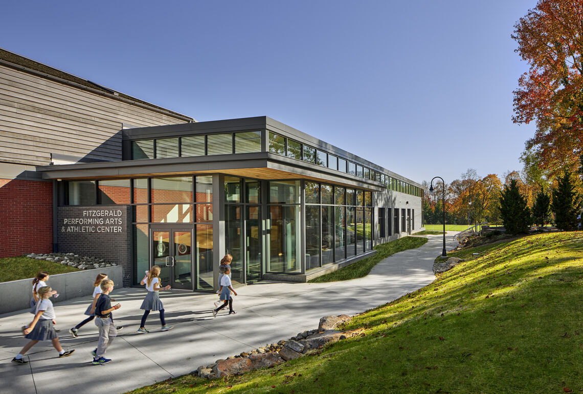 Part of a historic expansion project that is almost doubling Holy Child’s campus in size, the Fitzgerald Performing Arts and Athletics Center is a 10,996-SF multi-purpose addition to Holy Child’s aging, existing gymnasium building which allows for athletic use, performing arts, and gathering spaces.